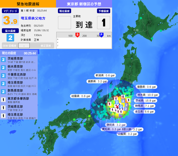 震源地は、千葉県北西部(北緯35.6度、東経140.1度)で、震源の深さは約70km、マグニチュードは5.0と推定されます。