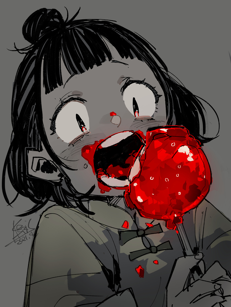 【紅果飴】露店で売られる安価な飴がけ菓子。赤ければ赤いほど良いとされ皆こぞって着色するので口周りは真っ赤になる #傀層城寨都市