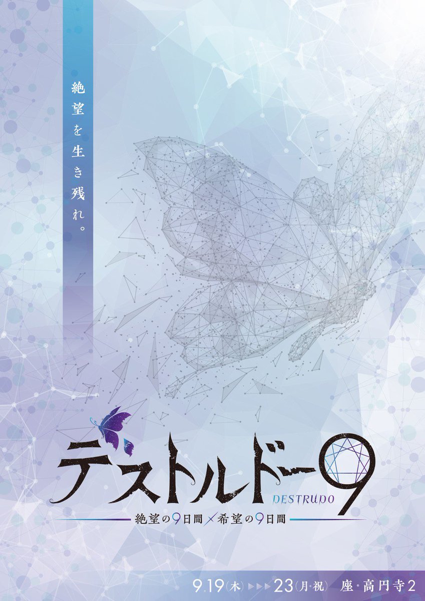 舞台「デストルドー9」ご来場いただきまして誠にありがとうございました!無事に千秋楽を迎えることができました。皆様の元に何か一つでもお届けできていれば幸いです。