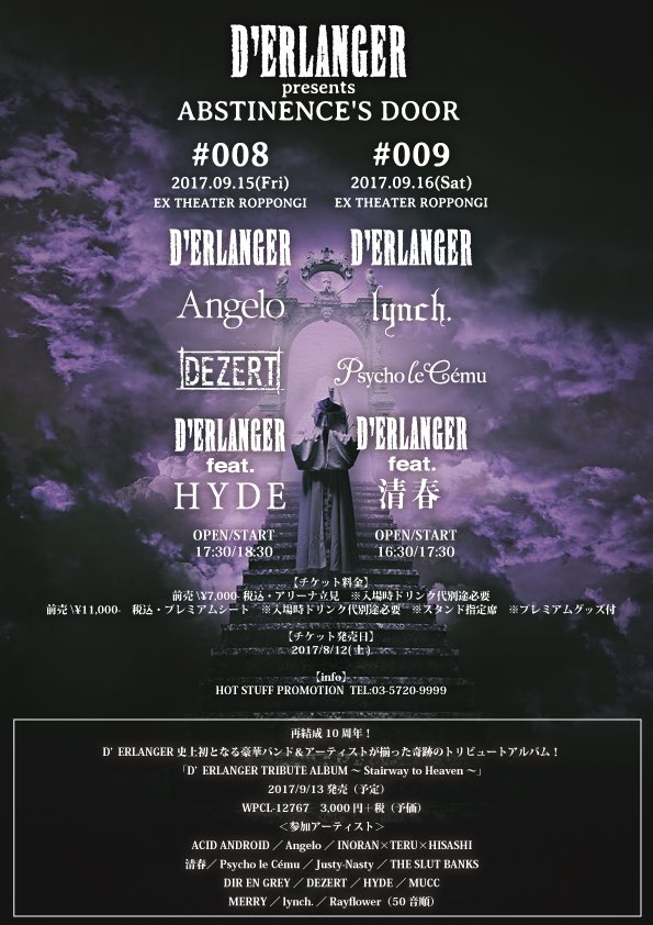【RELEASE】9/13(水)発売「D'ERLANGER TRIBUTE ALBUM ~Stairway to Heaven~」