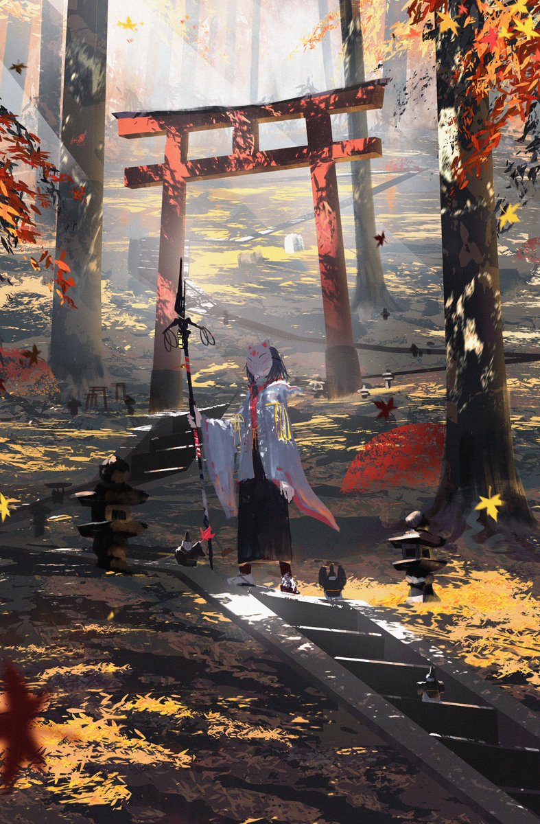狐面の主人公が秋の中をさまようゲーム