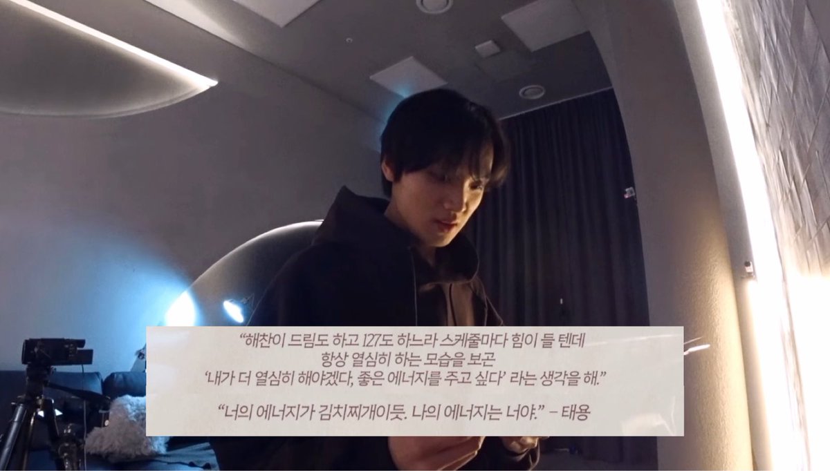 HAECHAN: when I was a trainee, a staff asked me if I wanted to be recognised by anyone. I chose TAEYONG hyung. he looked coolest to my standard, told me lots of nice things. I rlly wanted to hear him say to me tht I’ve improved / I was good. I’ll keep respecting & learn frm him.