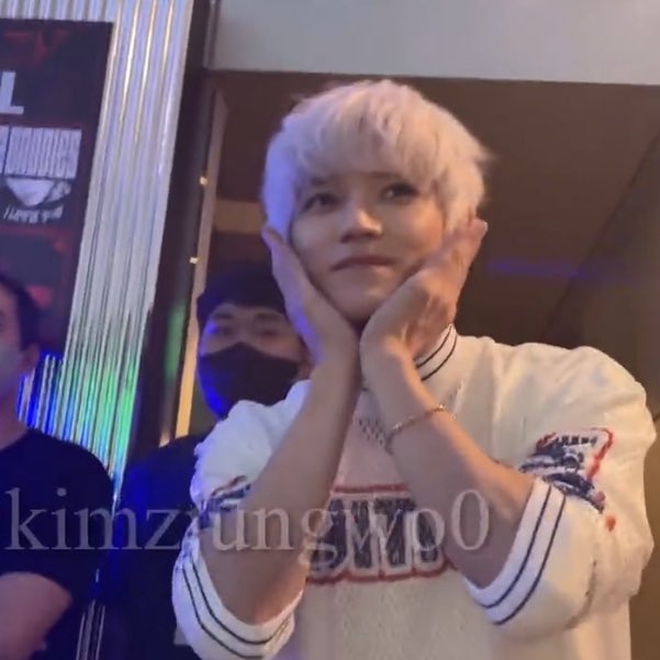 taeyong shouting from across asking jungwoo to do a heart and V 😂🫶🏻✌🏻