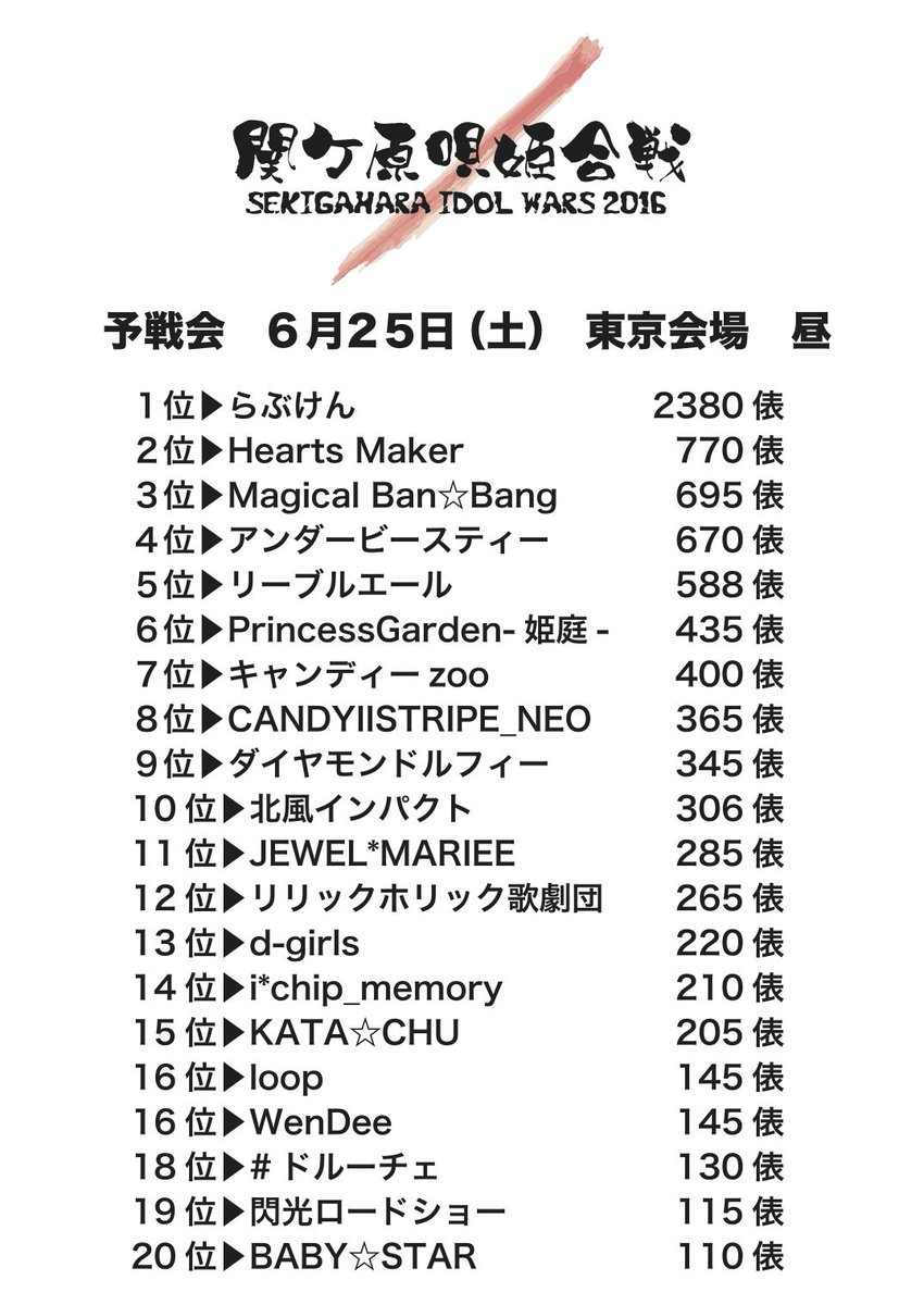 <予戦会 投俵途中経過 1〜20位> 5/25付