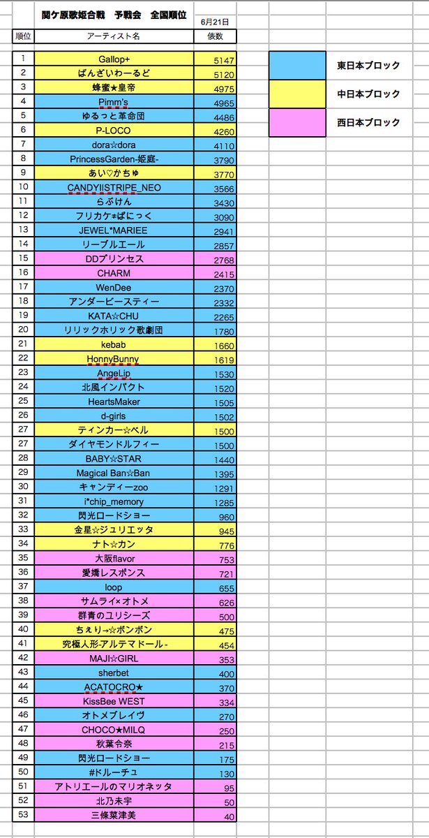 <予戦会 投俵途中経過 1〜20位> 5/22付