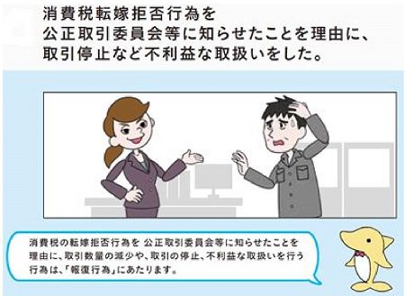 消費税の転嫁拒否行為を公正取引委員会に知らせたことを理由に,取引数量の減少や,取引の停止,不利益な取扱いを行う行為は