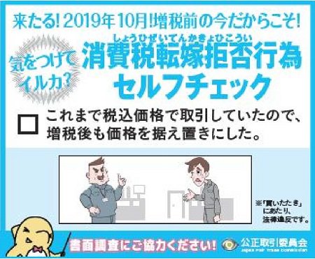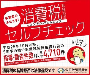 事業者の皆様,消費税転嫁拒否行為の未然防止のために,セルフチェックしませんか?