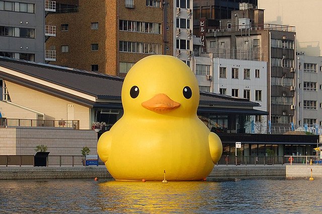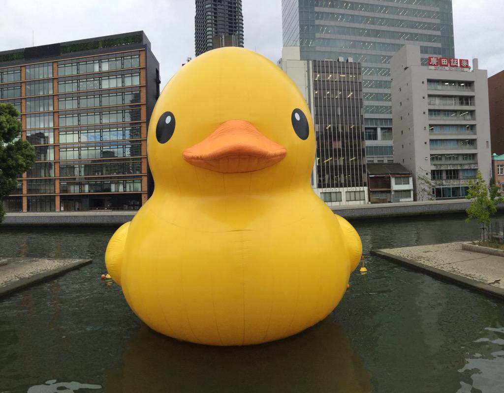 明日からの25日間、川面に巨体を揺らすアヒルを是非見に来てください!