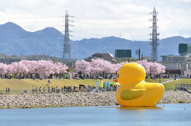 巨大アヒル・ラバーダックが桜の名所として知られる大阪狭山市の狭山池に登場します!