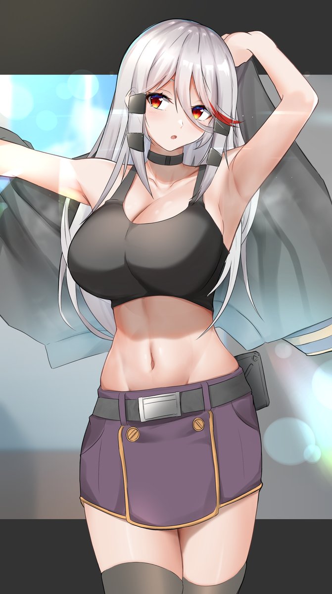 黒シャツ銀髪美少女