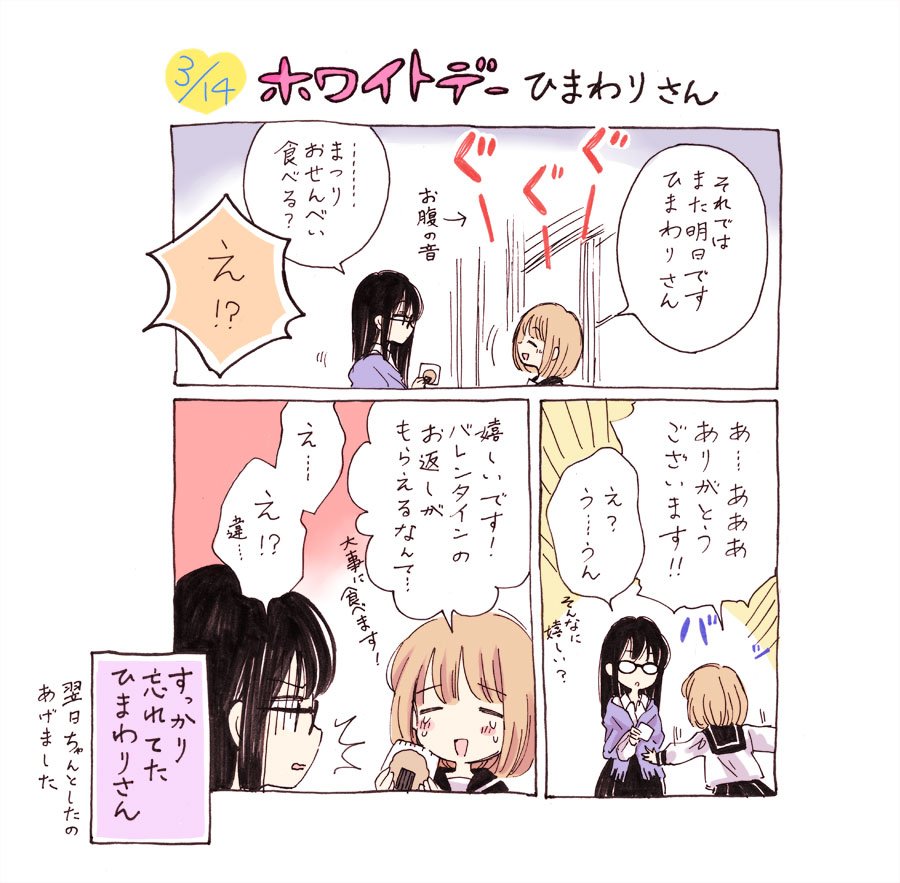 バレンタインデーの時に絵をあげたのでホワイトデーも。前に描いてあったオチがない3コマ漫画です。【菅野】 #ホワイトデー