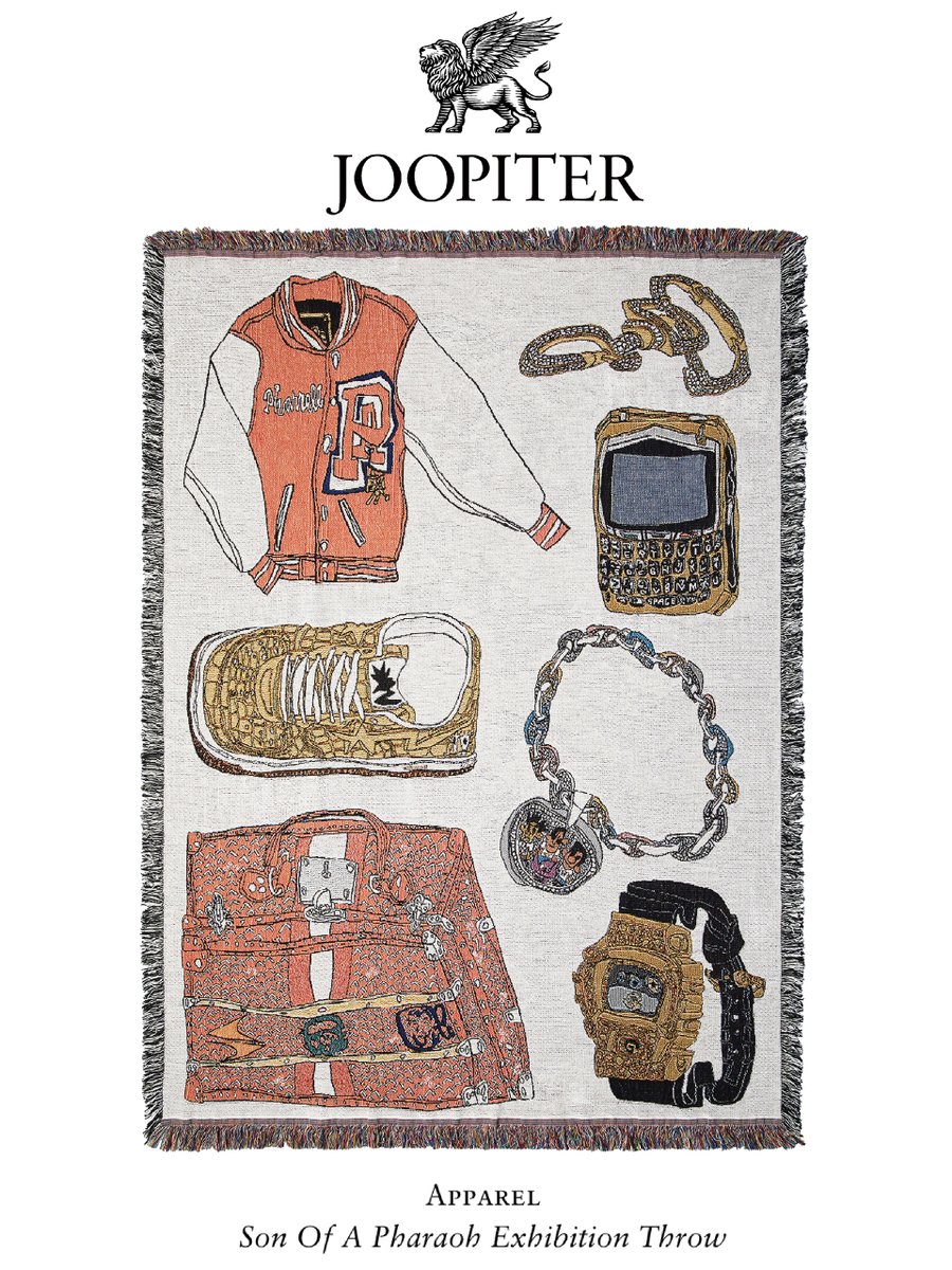 ┈┈┈┈┈┈┈┈ NEW WORK ┈┈┈┈┈┈┈┈ ファレル・ウィリアムスが立ち上げたデジタルオークションハウス『JOOPITER』へ本人の私物を7点描き下ろしました。 落合の描いた絵がラグになっております。 「JOOPITER Son of a Pharaoh Graphic Exhibition Throw Blanket」