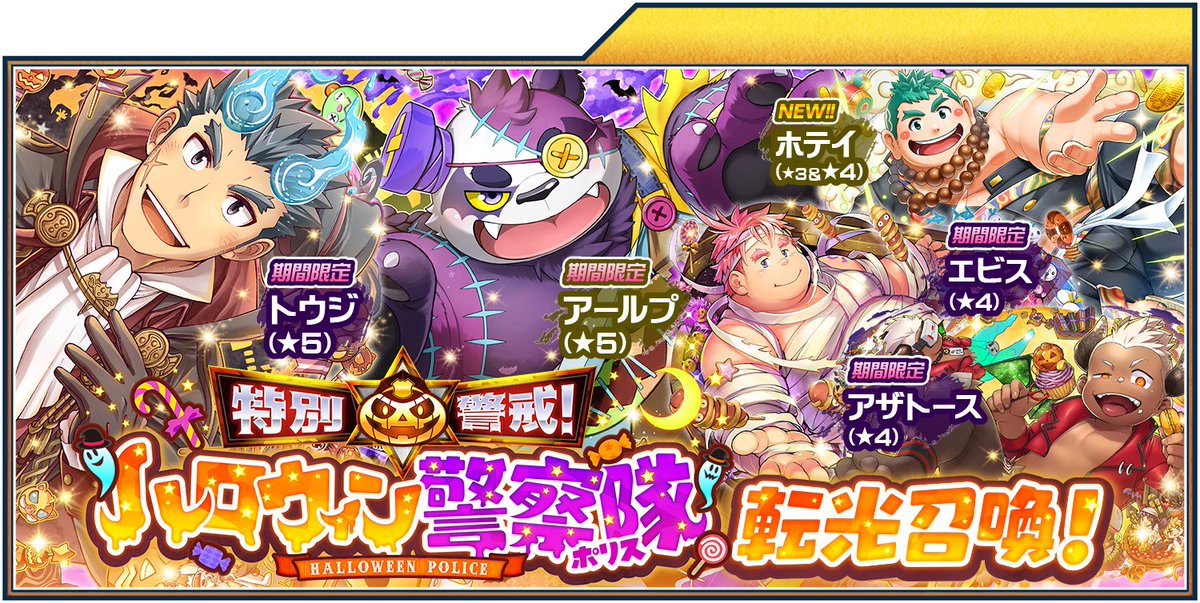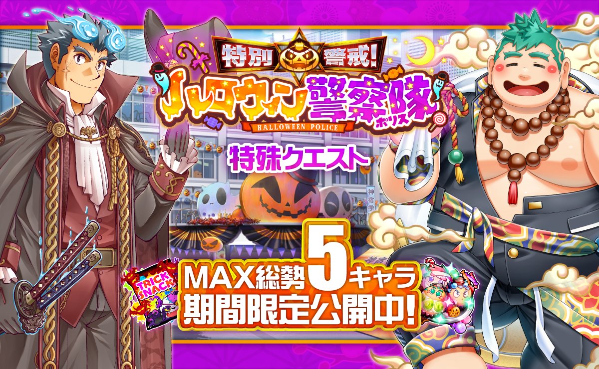 本日10/29(金)20:00より、東京放課後サモナーズ、期間限定「特別警戒!ハロウィン警察隊(ポリス)転光召喚」が公開中!詳細はこちら。