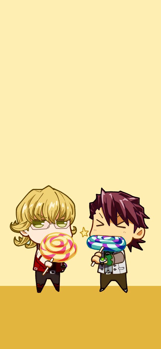 ペロペロキャンディバディ🐰🐯のiPhoneサイズ画像作ってみました。デフォとシックの色味で2種類あるのでよかったら拾っていって下さい🍭 とりあえず目は疲れにくい色だと思う…!