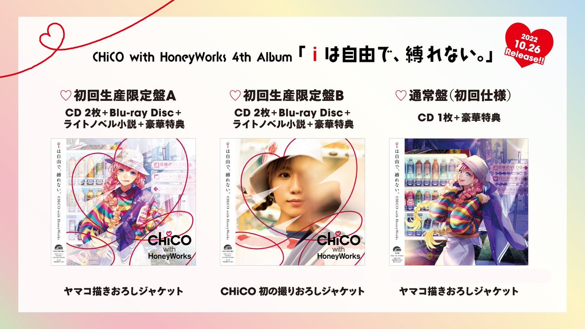 10月26日発売 CHiCO with HoneyWorks 4thアルバム「iは自由で、縛れない。」初回生産限定盤の価格に誤りがございました。大変申し訳ございません。