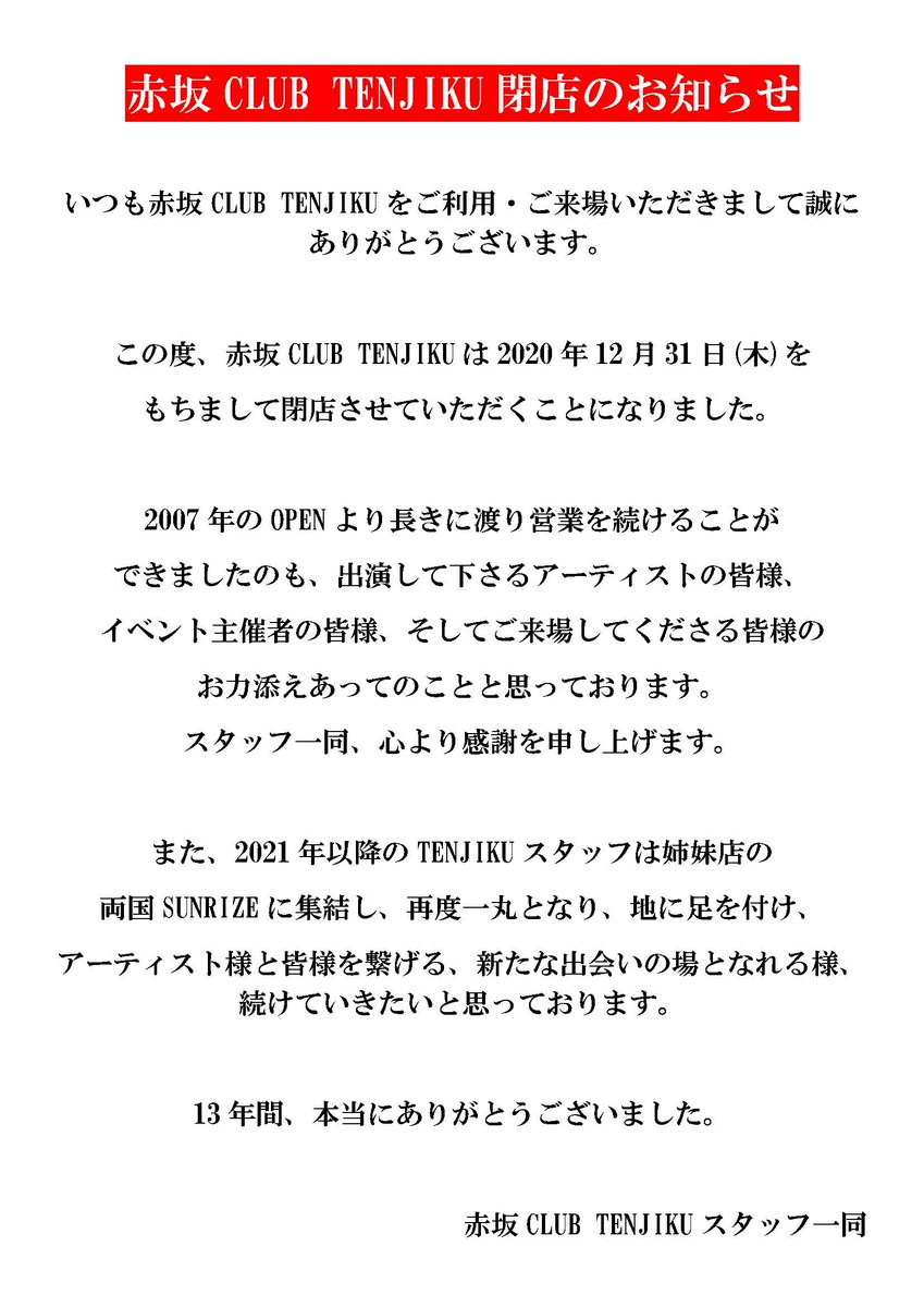 【赤坂CLUB TENJIKUは無事に13年間の幕を下ろしました】