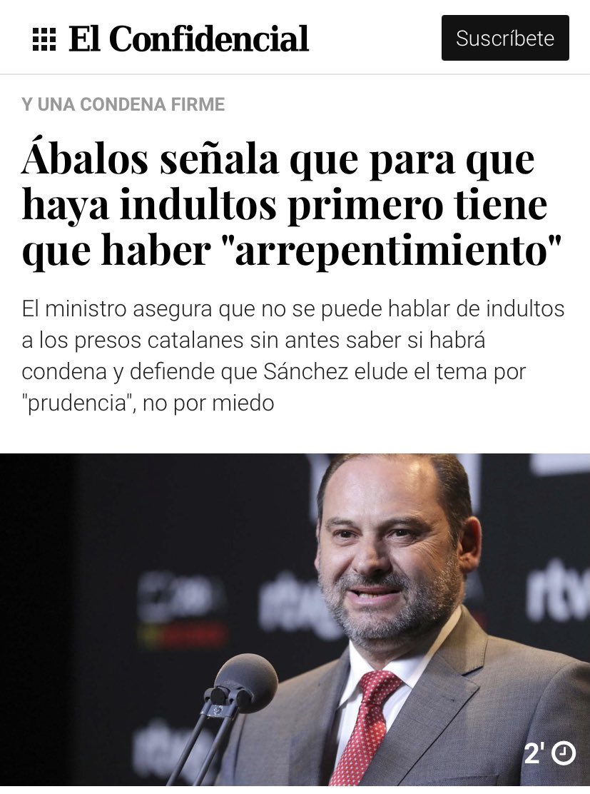 Ábalos sobre los indultos: "Si lo vuelven a hacer, el Estado tiene fortaleza para no permitirlo de nuevo".