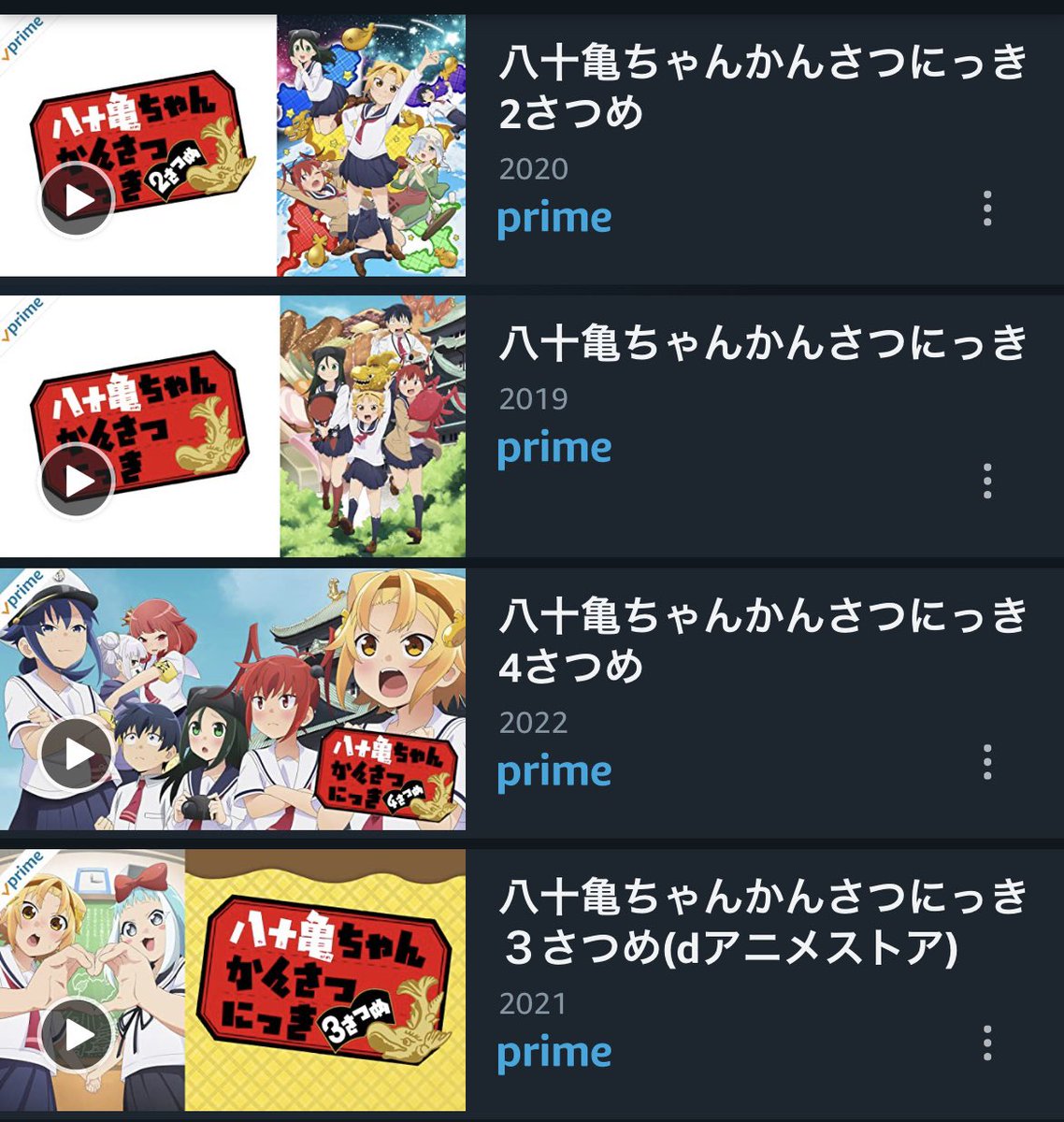 テレビアニメ「八十亀ちゃんかんさつにっき」がAmazon prime Videoで4期まで全て見放題になりました!やったー!