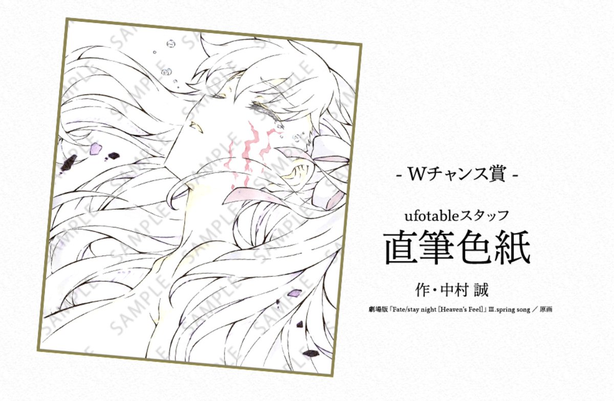 直筆色紙には一気に2枚が追加されます。須藤監督の「間桐桜」、秋山作画監督の「衛宮士郎」 どちらも1点ものです。先着予約は26日18時開始となります。みなさまのご来店おまちしております