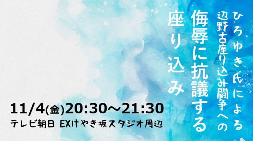 辺野古での座り込みに乱入し嘲笑行動を繰り返し運動を侮辱したひろゆき氏とヘイトスピーチをするような人を出演させるAbemaTVに抗議の座り込みです。