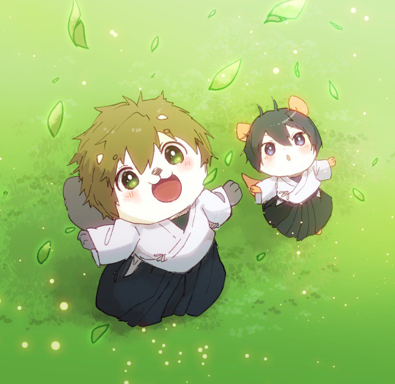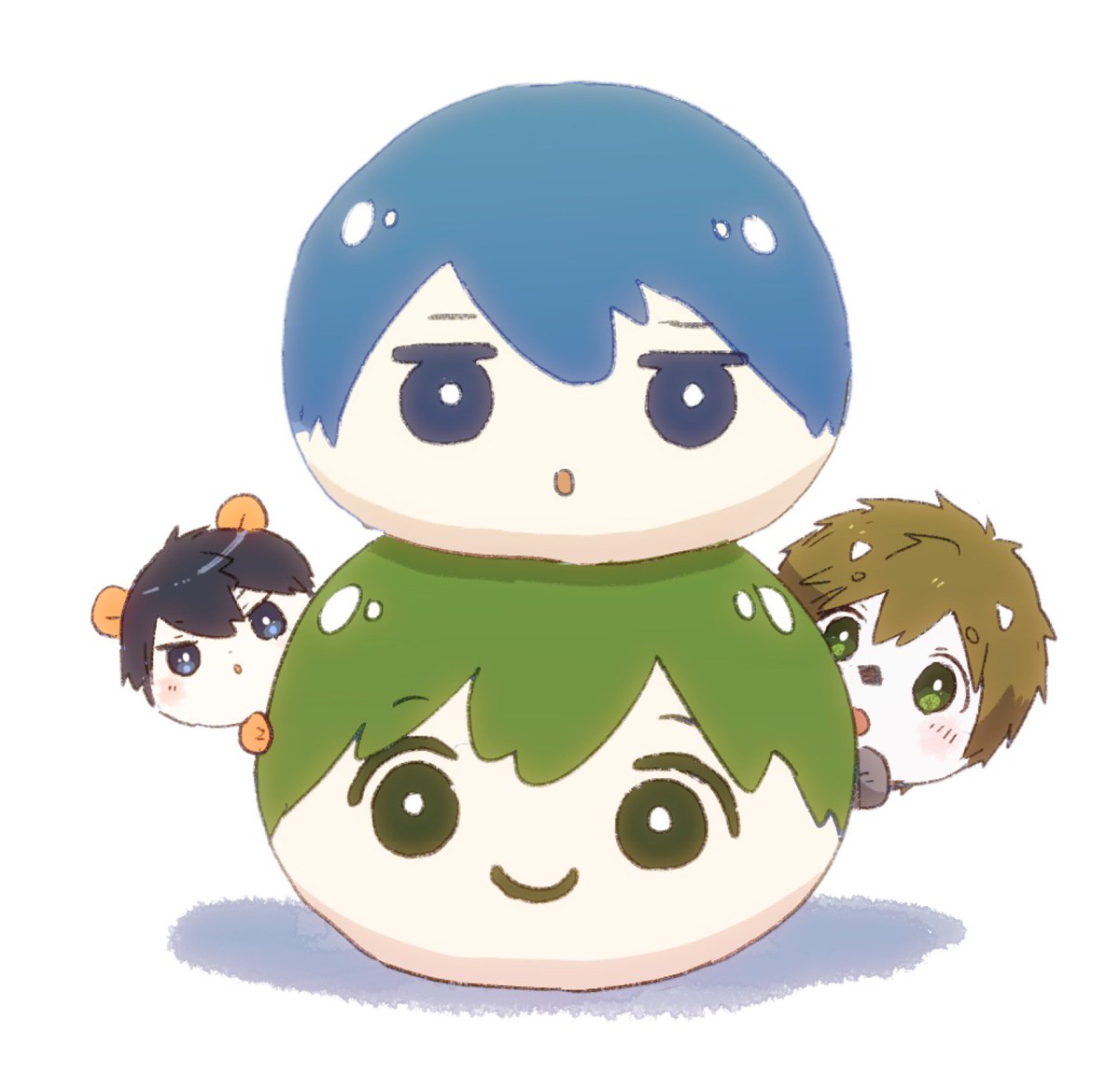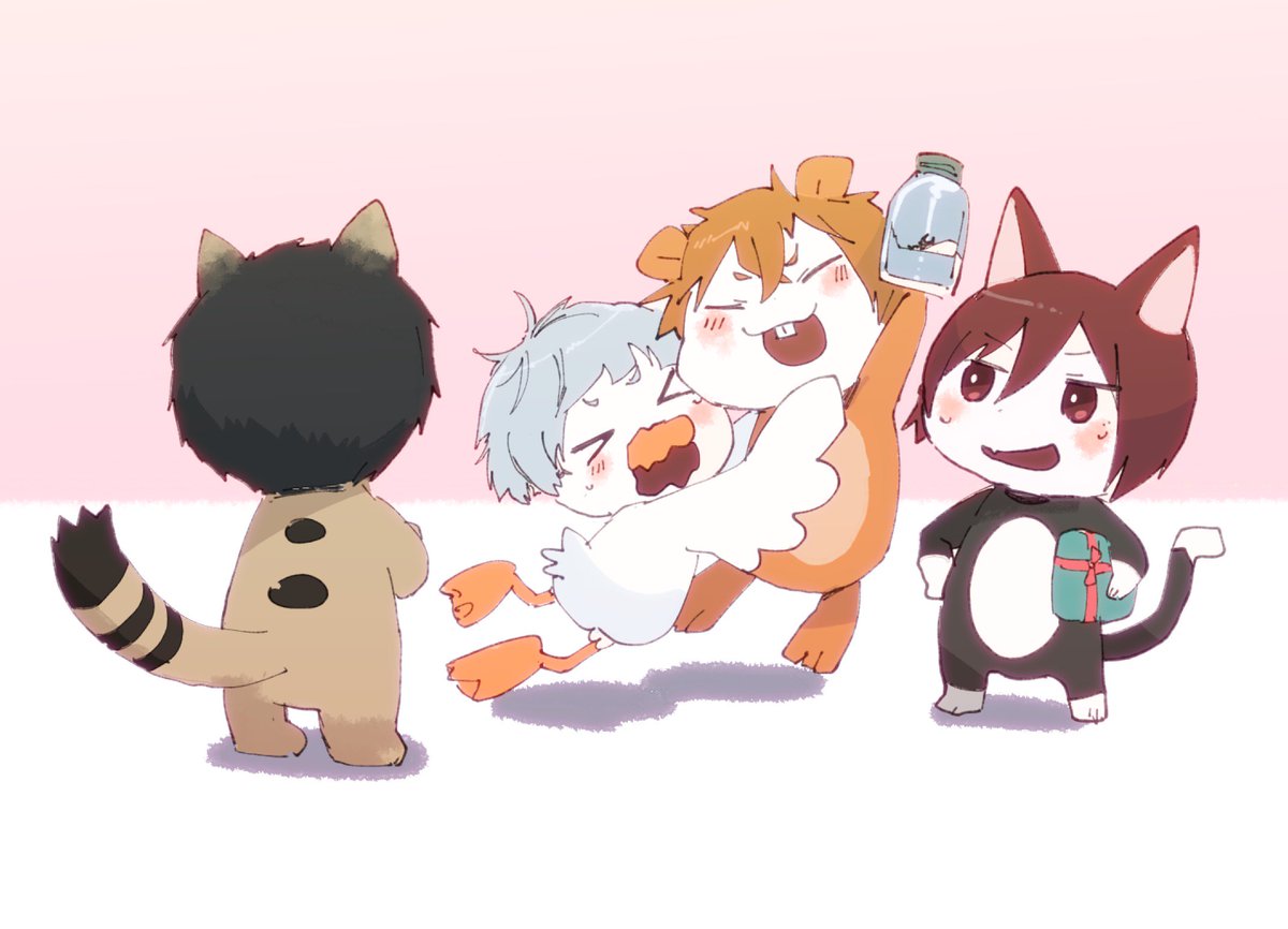 (=`ω´=)そうすけせんぱーい!!おいわいに、ぴゅんすけ2ごうを (беб*)ももくーーーん!!そっちじゃないでしょ!! (σノωσ)…は、はは……。 (・ˇω・ )げんきそーだな。