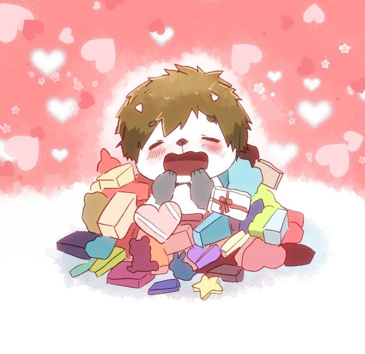 (..^ㅅ^..)ちょっぴりはやいけど、チョコみんなにもらっちゃった〜!みんな、やさしくしてくれてありがとう…えへへ♡