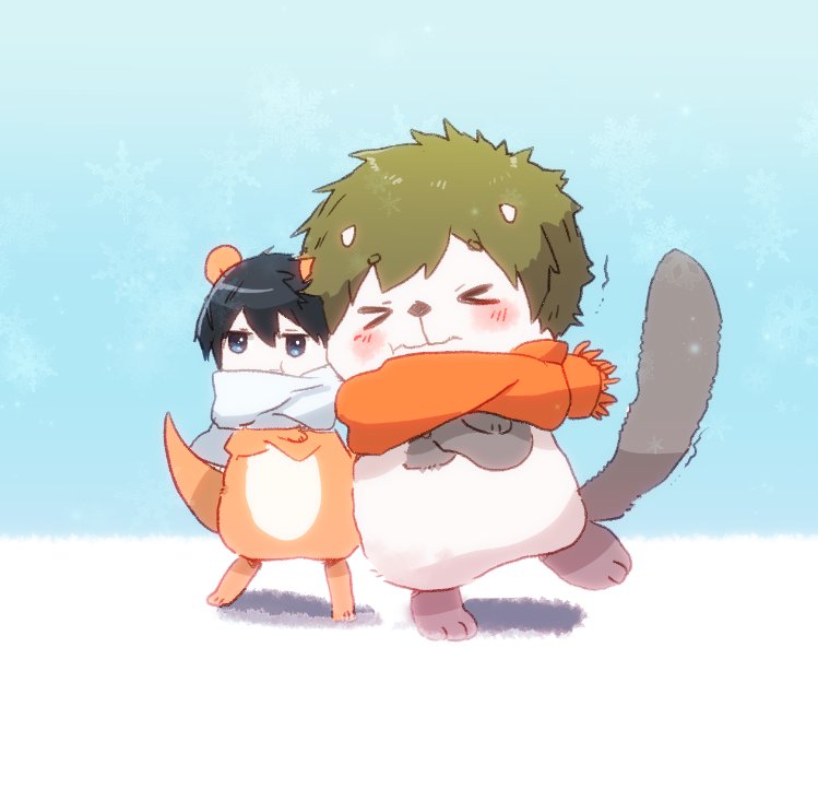 (..>ㅅ<..)きょうは、おそとにおかいものにいったんだけど……さ、さむ〜い!もうそろそろ3がつになるのに〜! (ㅎㅅㅎ)おい、くっつきすぎだまこと。
