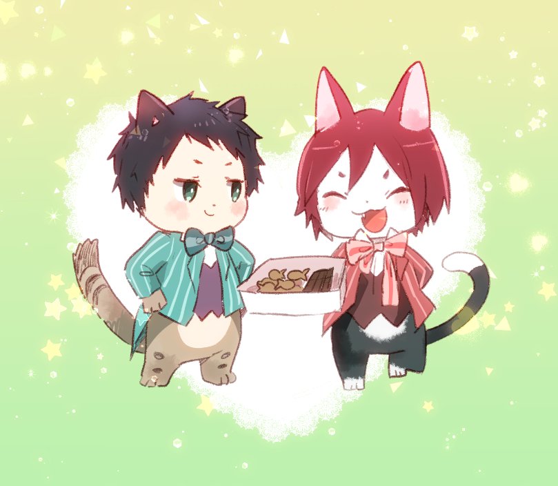 (* `ㅊ´)ん〜〜!うまそーな生チョコ!!!やったぜ! ∪ơノェơ)…おいしそうだね。あさひ、ひとりで全部食べたらだめだからね?! (* `ㅊ´)わーってる!