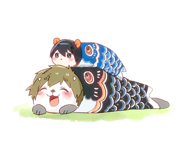 (..^ㅅ^..)こいのぼり見るとつい、やりたくなっちゃうんだよね〜!えへへ! (ㅎㅅㅎ)さかなになったきぶん。