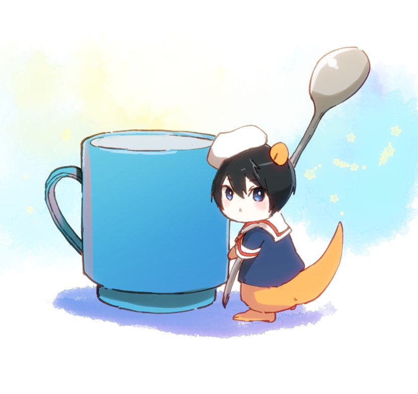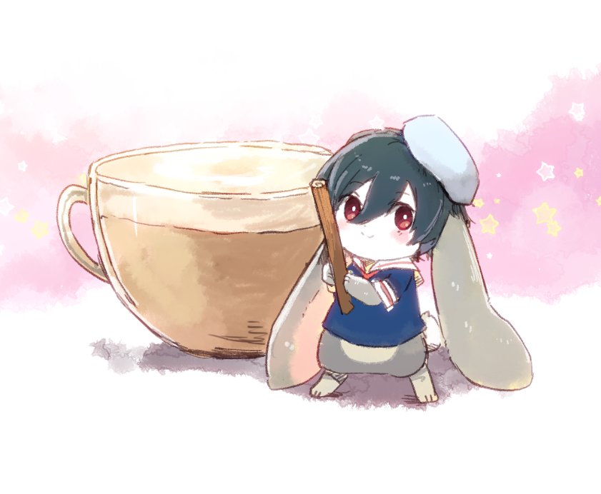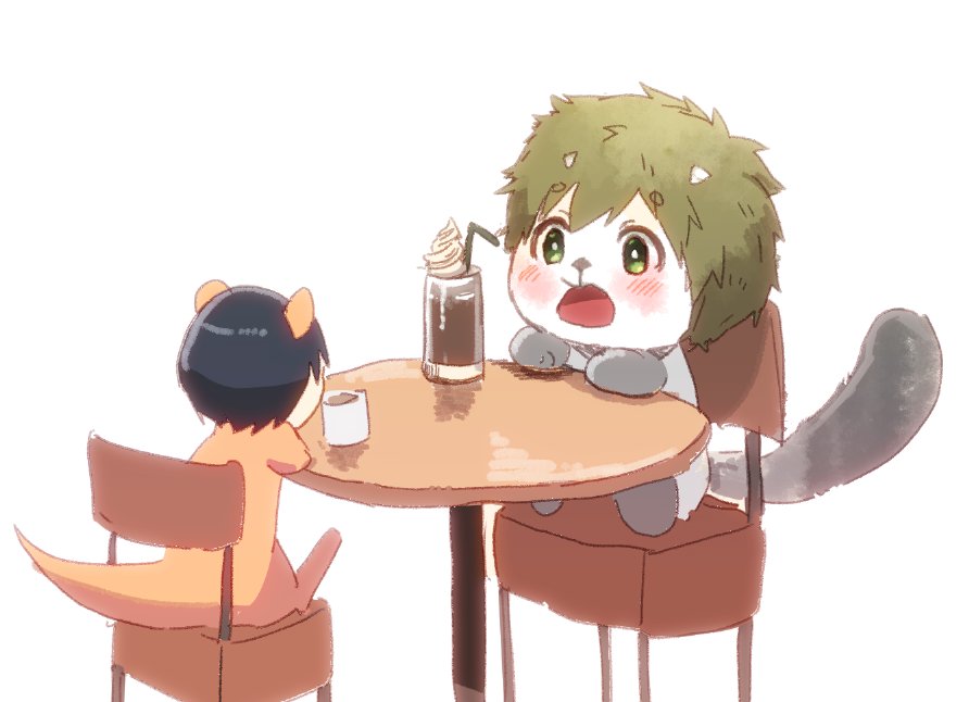 (..°ㅅ°..)コ、ココアフロート…!!わあ…!アイスがのってる! (ㅎㅅㅎ)……そうだな。(あまそうだ…) (..^ㅅ^..)いただきまーす!