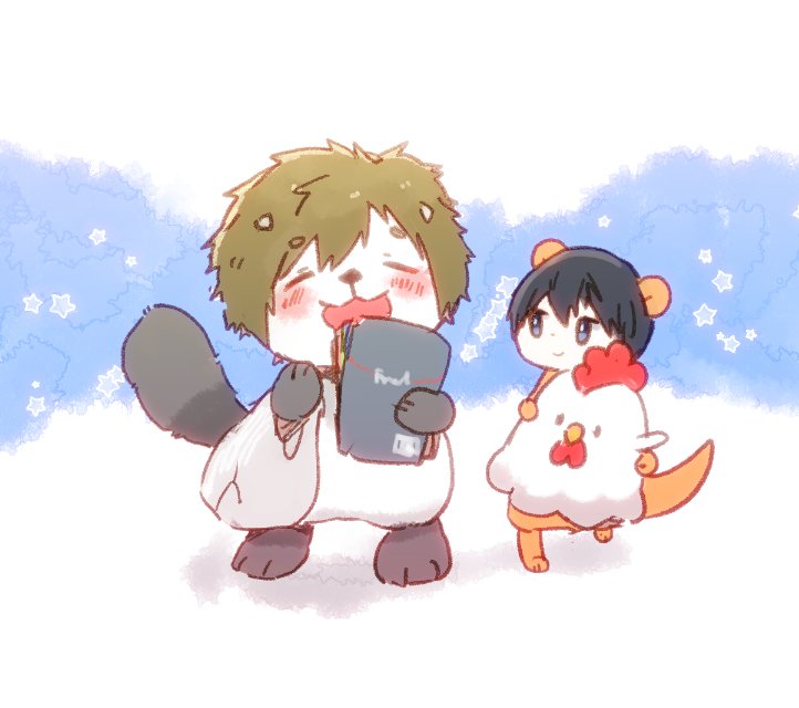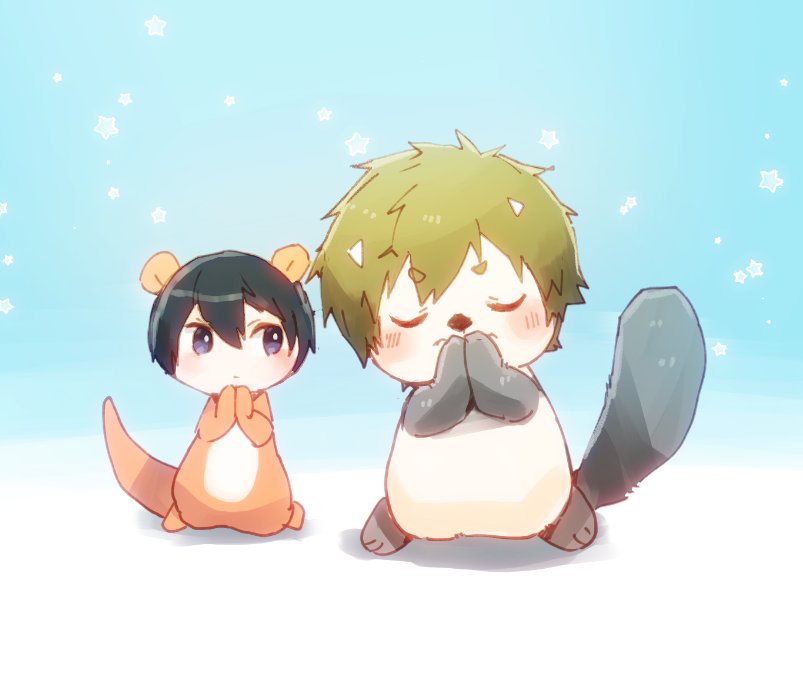 (..^ㅅ^..)きょうで、おれたちがツイッターをはじめて4ねん!初心にもどって、さいしょとおんなじポーズでしゃしんをとってみたよ〜! (ㅎㅅㅎ)なつかしいな。 (..^ㅅ^..)みんな、いつもおれたちのこと見守ってくれて本当に、ありがとう! (ㅎㅅㅎ)おれもかんしゃしてる。これからもよろしく。