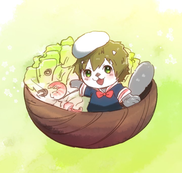 (ㅎㅅㅎ)おれからは、スープのしょうかい。…このしゃしんじゃ、スープみえないけど。にんじんのポタージュだ。…サバスープを推したがきゃっかされた。