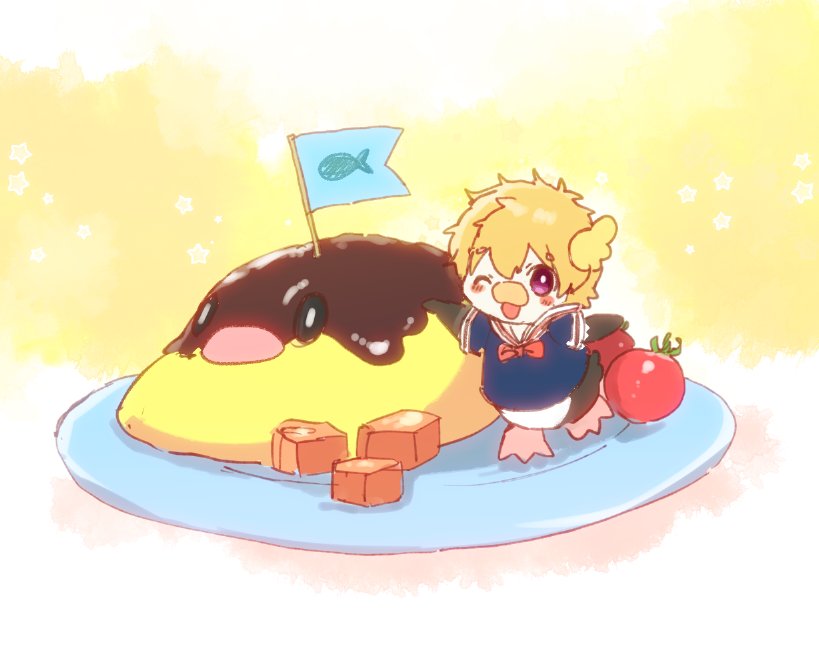 (*^◇^*)きょうは、ぼくのおすすめメニュー!ぺんぎんをイメージしたオムライスだよ♪ふわふわでとろっとろなたまごをあじわってね〜!