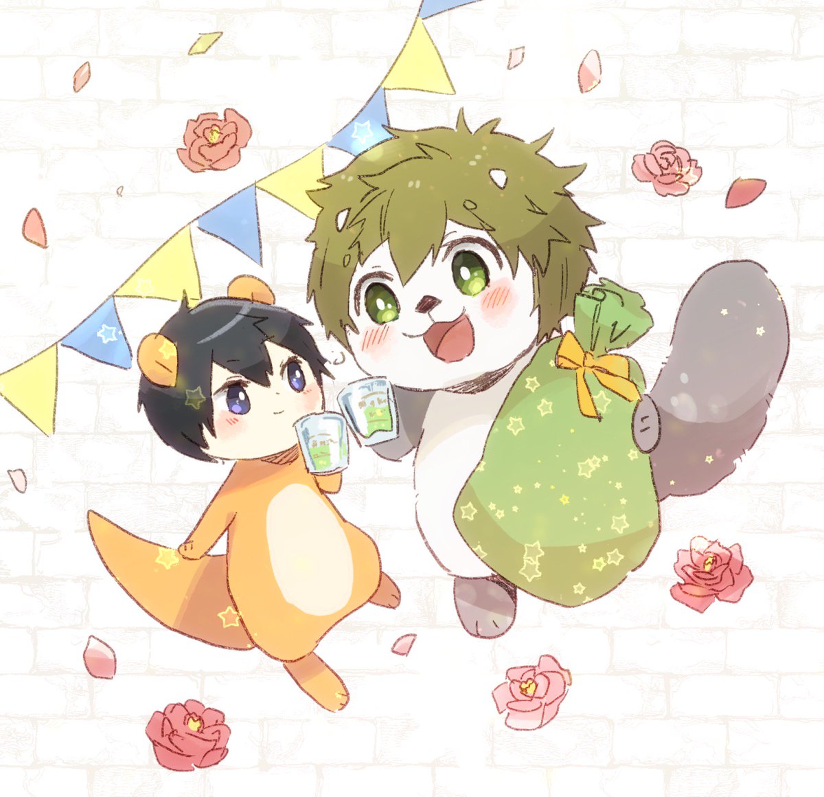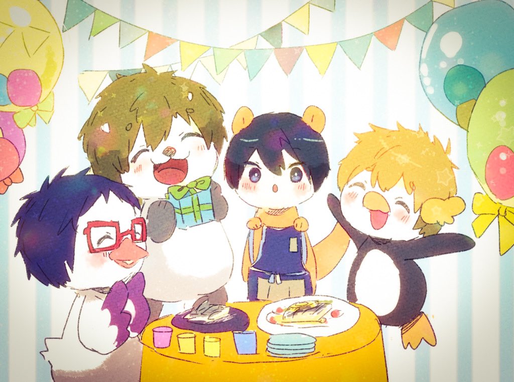 (ㅎㅅㅎ)たんじょうびおめでとう、まこと。 (..^ㅅ^..)わぁっ、ありがとう!はるちゃん! (..^ㅅ^..)(ㅎㅅㅎ)かんぱーい!