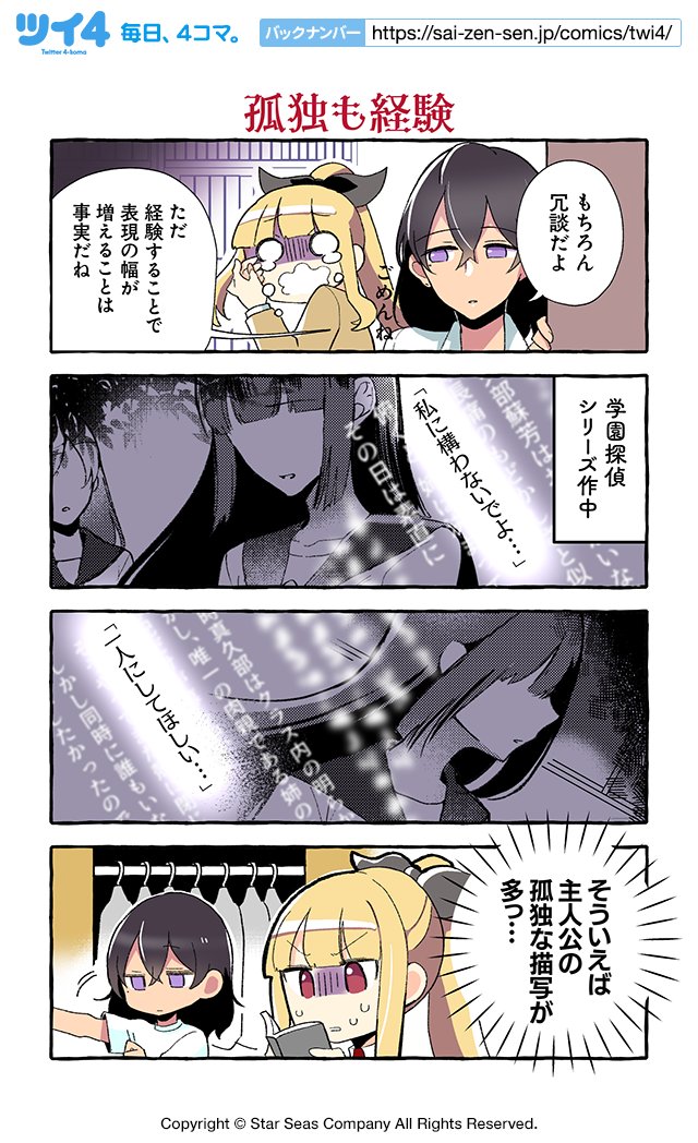 【孤独も経験】紺色3号『同級生の推し作家に百合妄想がバレた結果』 sai-zen-sen.jp/comics/twi4/os… #ツイ4
