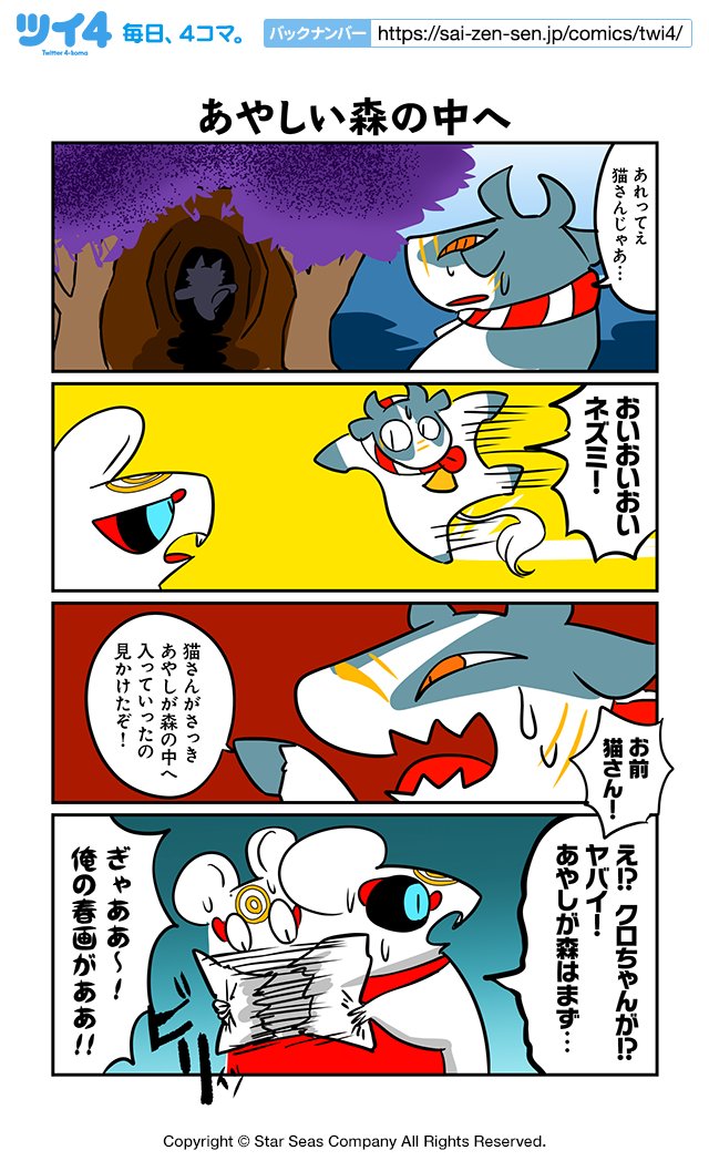 【あやしい森の中へ】ぬら次郎『十二支とネズミとはぐれ猫』 sai-zen-sen.jp/comics/twi4/jy… #ツイ4