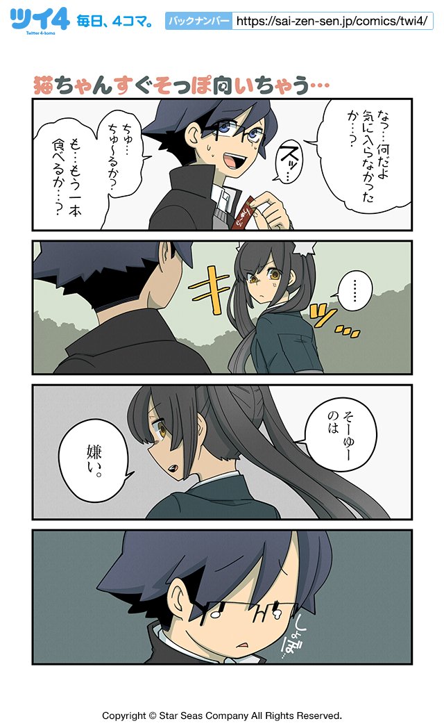 【猫ちゃんすぐそっぽ向いちゃう・・・】NOBEL『猫の手だって役に立つ』 sai-zen-sen.jp/comics/twi4/ne… #ツイ4
