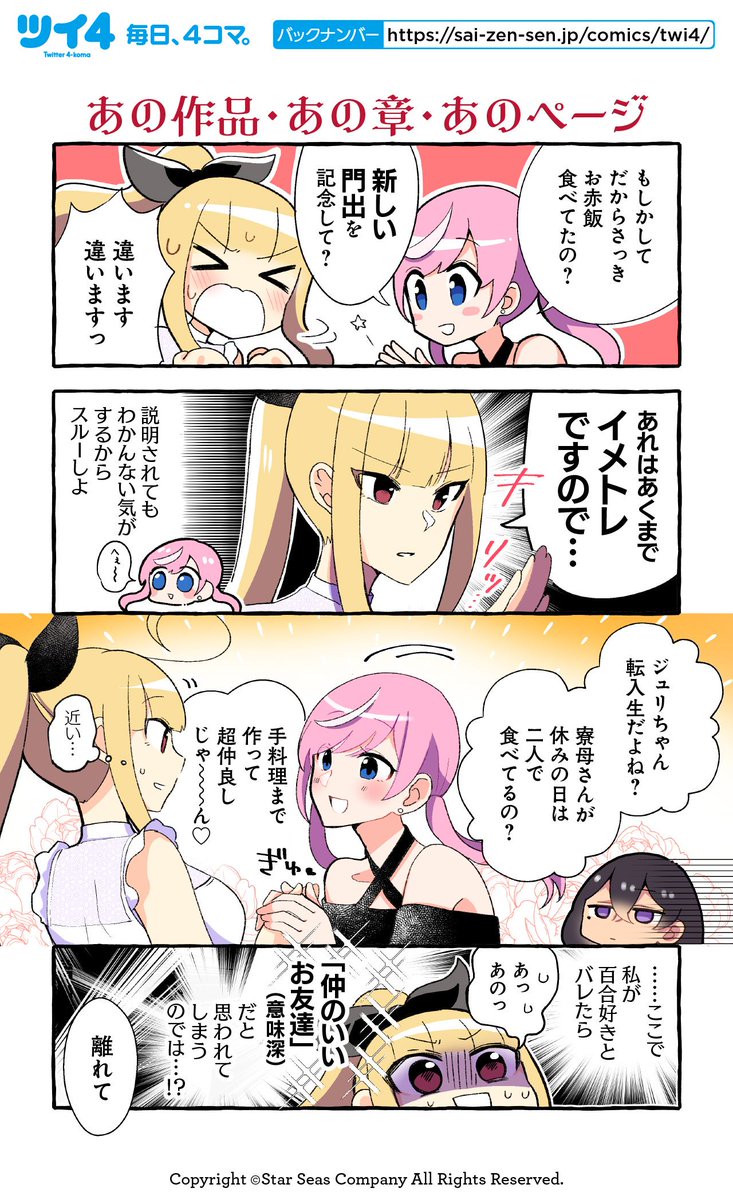 【あの作品・あの章・あのページ】紺色3号『同級生の推し作家に百合妄想がバレた結果』 sai-zen-sen.jp/comics/twi4/os… #ツイ4