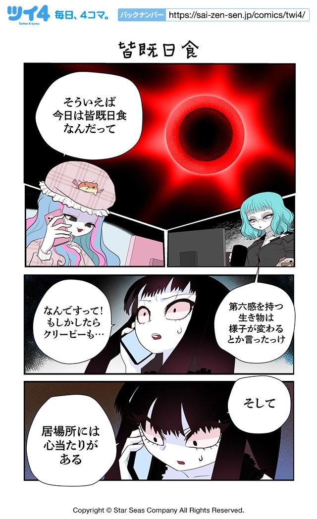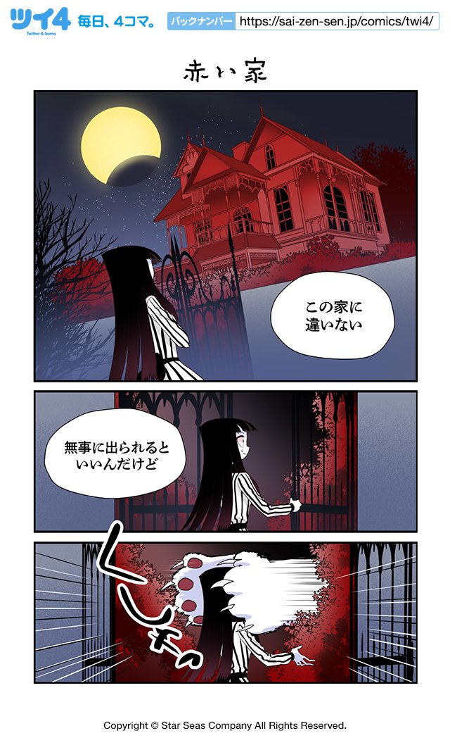 【皆既日食】【赤い家】コットン バレント『CreepyCat 猫と私の奇妙な生活』 sai-zen-sen.jp/comics/twi4/Cr… #ツイ4