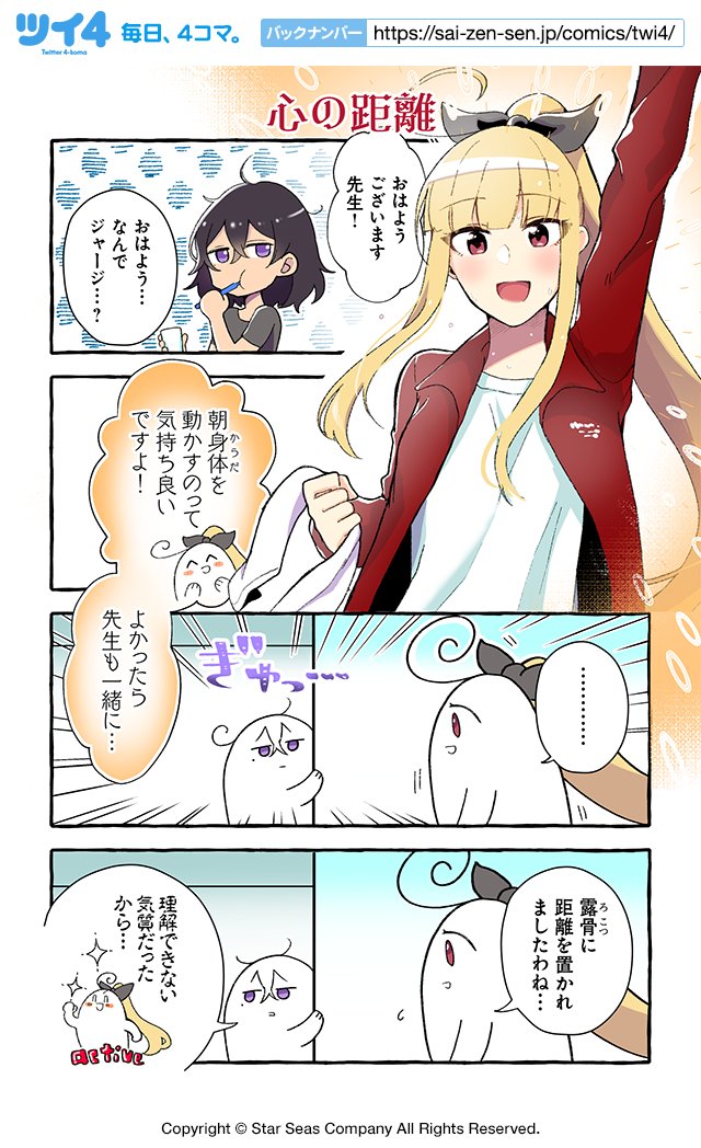 【心の距離】紺色3号『同級生の推し作家に百合妄想がバレた結果』 sai-zen-sen.jp/comics/twi4/os… #ツイ4