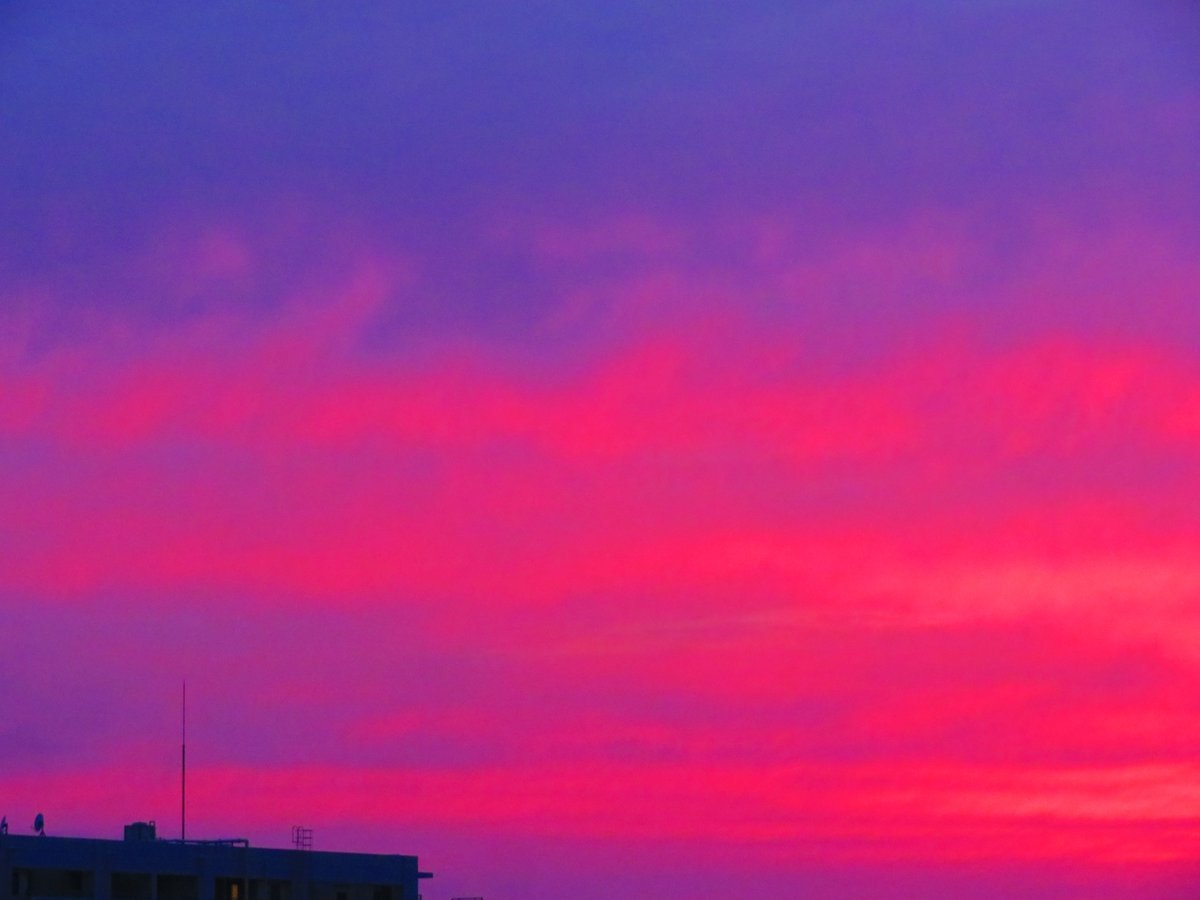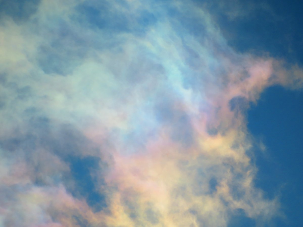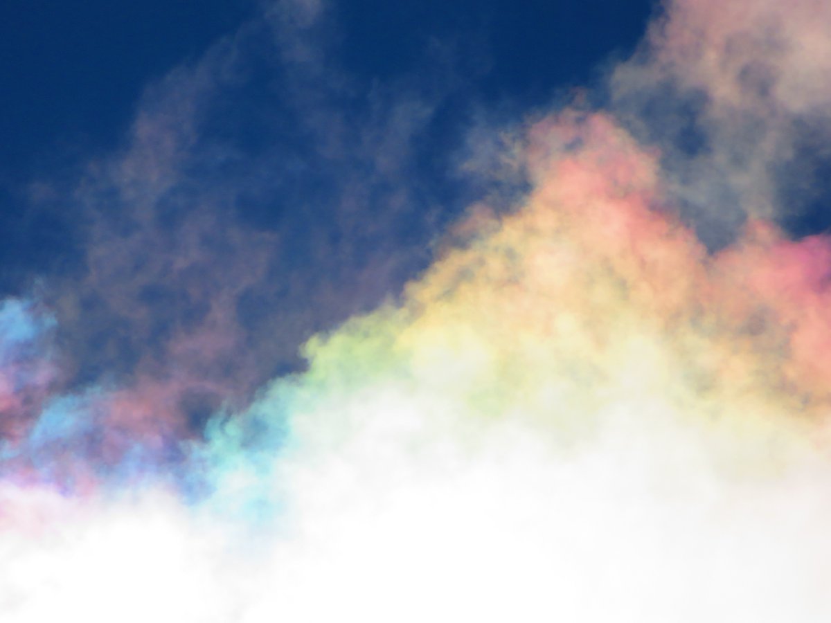 虹は太陽とちょうど反対側の空の対日点を中心に円状の形をしていて,通常はその一部が弧状になって見えています.太陽高度が高いと弧状のてっぺんだけが見え,写真のように低い空が虹色になります. twitter.com/kobenp_photo/s…