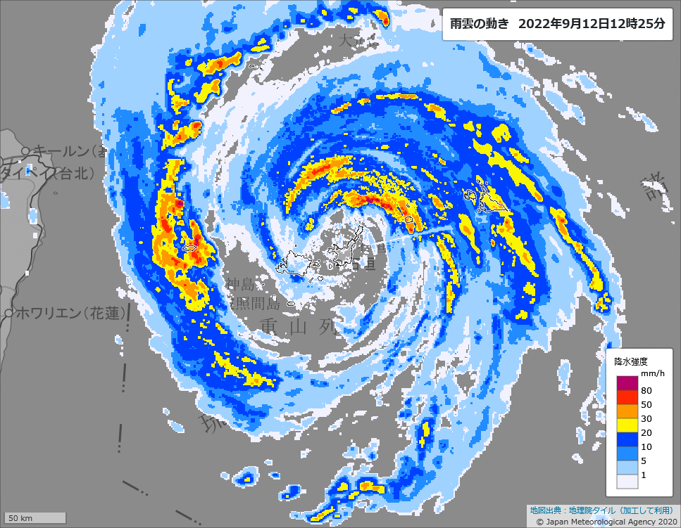先島諸島の皆様、台風にどうかお気をつけください。非常に強い台風12号は12日昼過ぎ~夕方に先島諸島にかなり接近する見込み。13日にかけて一部の住家が倒壊するおそれもある猛烈な風の吹く所がある予報です。暴風・高波・高潮に厳重に警戒を!竹富町では記録的な大雨になっています。大雨にも要警戒。
