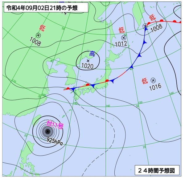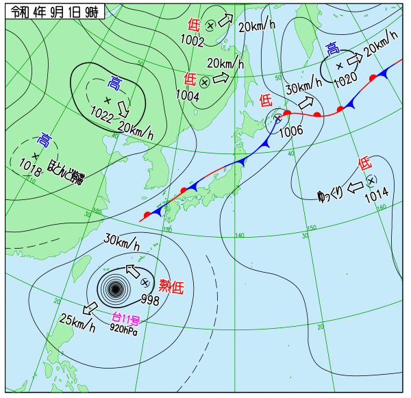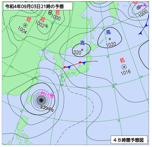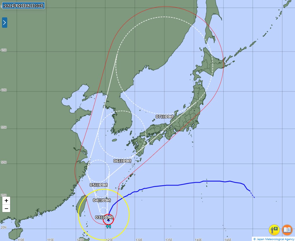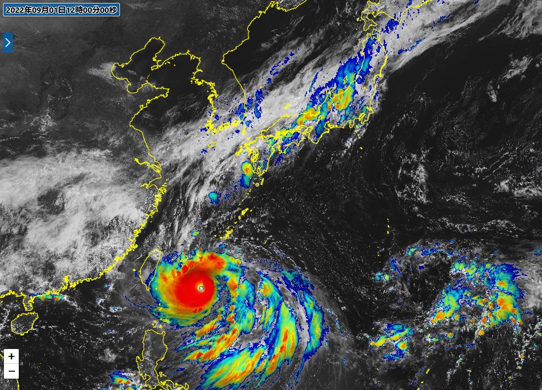 猛烈な台風11号が南下する様子です。このあと2日午前中にかけて沖縄の南で停滞した後、2日午後から北上、3日夜には先島諸島にかなり接近する見込み。