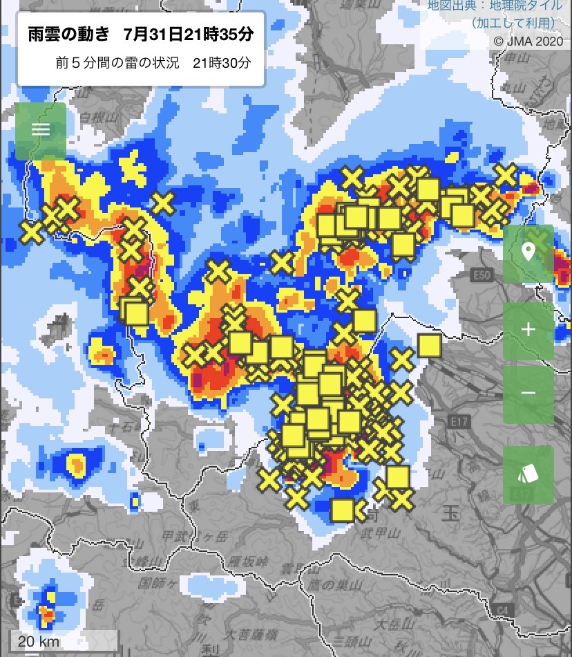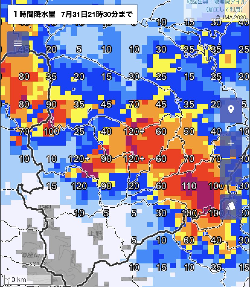 群馬県で1時間に100mmを超える猛烈な雨が解析されている地域が複数あります。水害の危険度が高まっています。どうか安全にお過ごしください。jma.go.jp/bosai/nowc/