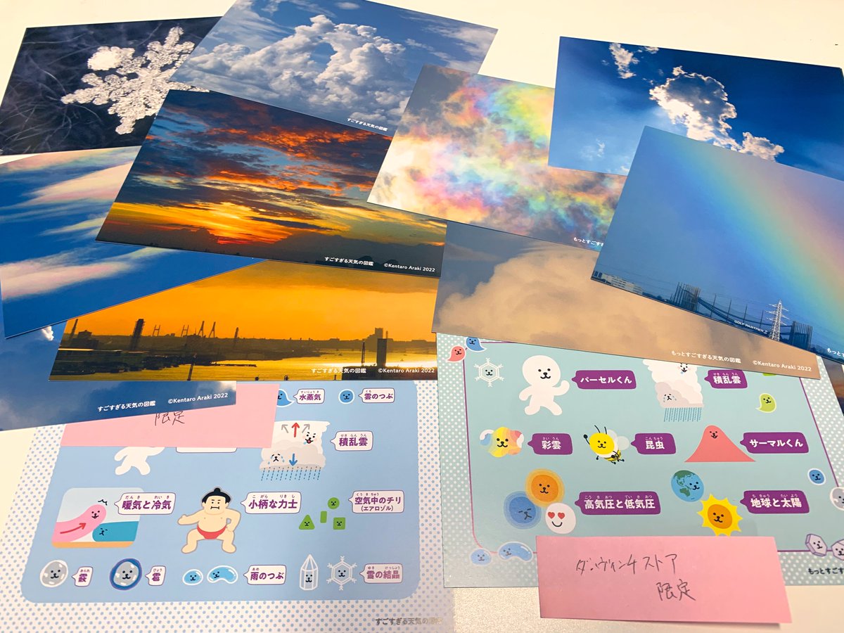 『すごすぎる天気の図鑑』『もっとすごすぎる天気の図鑑』に期間限定でAmazon・書店特典がつきました!チャートや一覧表の印刷用PDFデータ配信です。書店さんではポストカードもついてます。ぜひ🌦