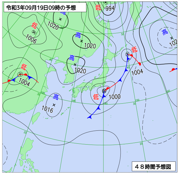 今夜の天気分布予報です。 きょう21日は