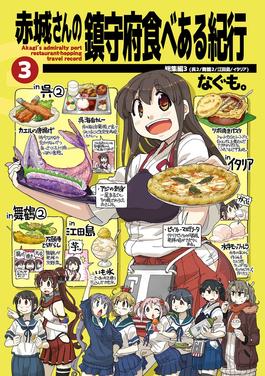 これまで出した食べ歩き本のまとめです。呉、舞鶴、江田島、イタリア(ナポリ、ローマ、ヴェネツィア)。赤城さんが現地を巡って食べ歩きする漫画です。246ページ。