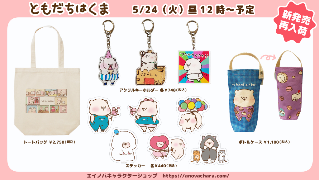 オンラインショップのエイノバキャラクターショップにて新商品・再入荷商品が販売されます☺️