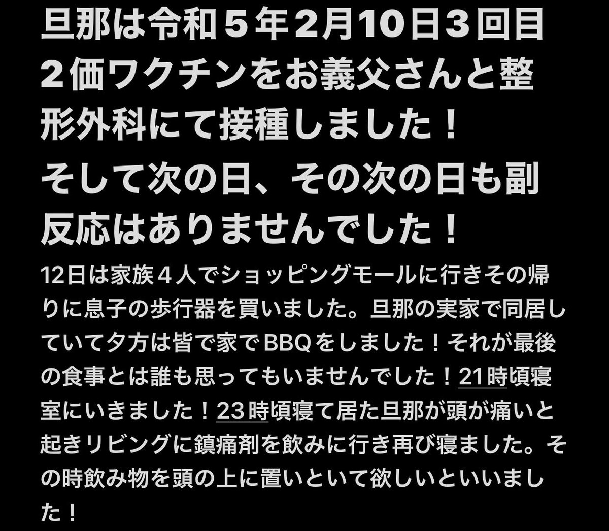 健康体の旦那氏はワクチン接種後に亡くなりました。