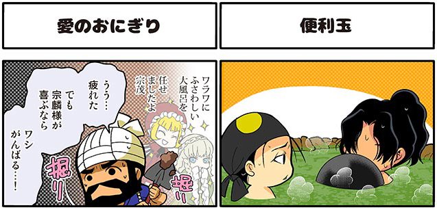 【湯けむり】戦国BASARAシリーズ公式サイトにて、好評連載中4コマ漫画「湯けむり戦国BASARA」更新!「便利玉」「愛のおにぎり」の2本立て!是非ご覧ください! capcom.co.jp/game/content/b…